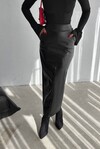 Arkadan Yırtmaçlı Deri Kalem Etek