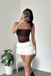 Beyaz Kat Kat Volanlı Şort Etek – Yüksek Bel, Feminen Mini Tasarım