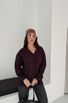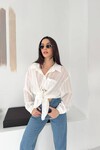 Ekru Çizgili Transparan Dokulu Oversize Kadın Gömlek