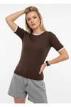 Fitilli Kısa Kollu Biyeli Triko Bluz Kahve