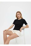 Zamansız ve şık tasarımıyla öne çıkan fitilli kısa kollu triko bluz, kontrast siyah biyeli yaka ve kol detaylarıyla modern bir görünüm sunar. Vücuda oturan formu sayesinde günlük kombinlerden ofis stiline kadar geniş kullanım alanı sağlar. Yumuşak dokulu triko yapısı gün boyu konfor sunarken, basic ve sade tarzı dolabın kurtarıcı parçası olur.