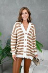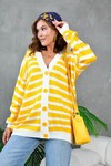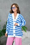 Kadın Bilek Etek Ve Banları Fitilli Çizgi desenli Triko Hırka