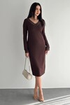 Kadın Dantel Detaylı V Yaka Elbise – Uzun Kollu Şık Günlük Elbise