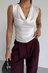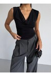 Kadın Degaje Yaka Kolsuz Bluz Siyah