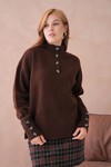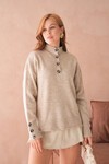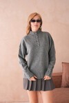 Kadın Dik Yaka Kolları Düğme Detaylı Yumuşak Dokulu Şardonlu Triko Kazak