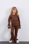 Kız Çocuk Paça Fiyonk Detaylı Kaşkorse Alt Üst Takım Kahve