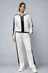 Modal Kumaş Yarım Fermuarlı Şeritli Eşofman Gül Kurusu