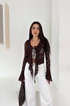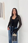 Siyah Dantel Bağlama Detaylı Transparan Bluz – Uzun Kollu Şık Kadın Bluz