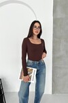 Siyah Kare Yaka Uzun Kollu Basic Bluz – Esnek Kumaş Günlük Şık Kadın Bluz