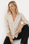 Bej V Yaka Düğmeli Kadın Gömlek – Rahat Kesim, Günlük & Şık Stil