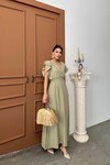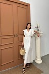 Beli Gipeli Beyaz Keten Elbise