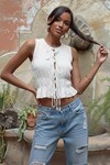 Beyaz Büzgülü Bağlamalı Crop Bluz Bohem Şık Gipe Detaylı
