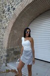 Beyaz Tek Omuz Prenses Kol Crep Bluz