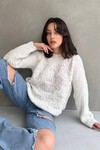 Bisiklet Yaka Bürümcük Detaylı Triko Kazak Beyaz