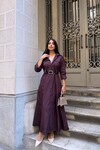 Çift Cep Detay Gömlek Elbise Mürdüm