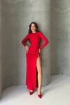 Derin Yırtmaçlı Maxi Elbise Kırmızı