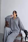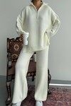 Fermuar Detay Üst ve Alt Triko Takım Ekru