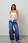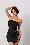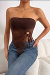 Zarif ve iddialı görünümü bir araya getiren bu haki straplez bluz, modern stilin vazgeçilmez parçalarından biri olmaya aday. Göğüs kısmında yer alan opak yapı, alt bölümde şık bir şekilde devam eden transparan tül detayı ile feminen bir dokunuş sunar. Ön orta kısımdaki büzgü ve halka detayı, ürüne hareket ve özgün bir stil kazandırır.