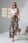 Kadın Bej Viskon Bol Paça Desenli Pantalon