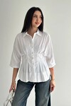 Kadın Bel Formlu Gömlek – Düğmeli Yarım Kol Şık Gömlek Beyaz