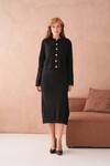Kadın Bisiklet Yaka Düğme Detay Dokulu Ceket Elbise İkili Triko Takım