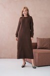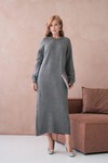 Kadın Bisiklet Yaka Yumuşak Dokulu Maksi Boy Şardonlu Oversize Triko Elbise