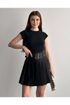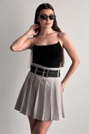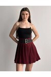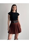 Kadın Çift Kemerli Şortlu Pileli Etek Kahve