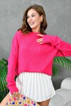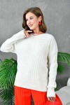 Kadın Geniş Yaka Fitilli Uzun Triko Kazak
