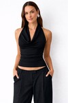 Kadın Halter Yaka Bluz Drapeli – Kayık Yaka, Esnek Kumaş, Fit Kesim Şık Bluz