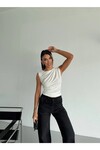 Kadın Kolsuz Dökümlü Sandy Kumaş Bluz Beyaz
