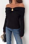 Kadın Omuz Açık Toka Detaylı Bluz