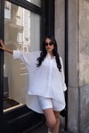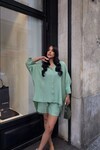 Keten Arkası Uzun Salaş Gömlek Şort Takım Bej