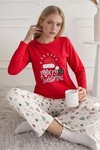 Kırmızı Merry Christmas Yeni Yıl Kadın Pijama Takımı