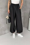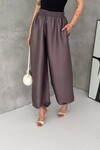 Saten Dokulu Lastik Paça Detaylı Yüksek Bel Bol Pantolon
