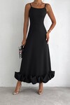 Siyah İthal Dabıl Kumaş Eteği Fırfırlı Elbise