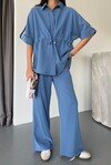 Tensel Kumaş Gömlek Pantalon Takım Mavi