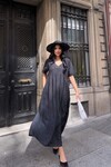 V Yaka Double Kol Siyah Salaş Elbise