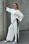 Yanları Şerit Detay Alt Üst Takım Beyaz