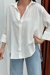 Yıkamalı Pamuk Keten Gömlek Beyaz